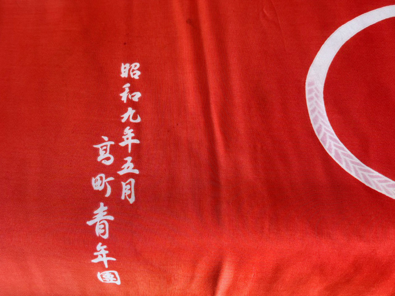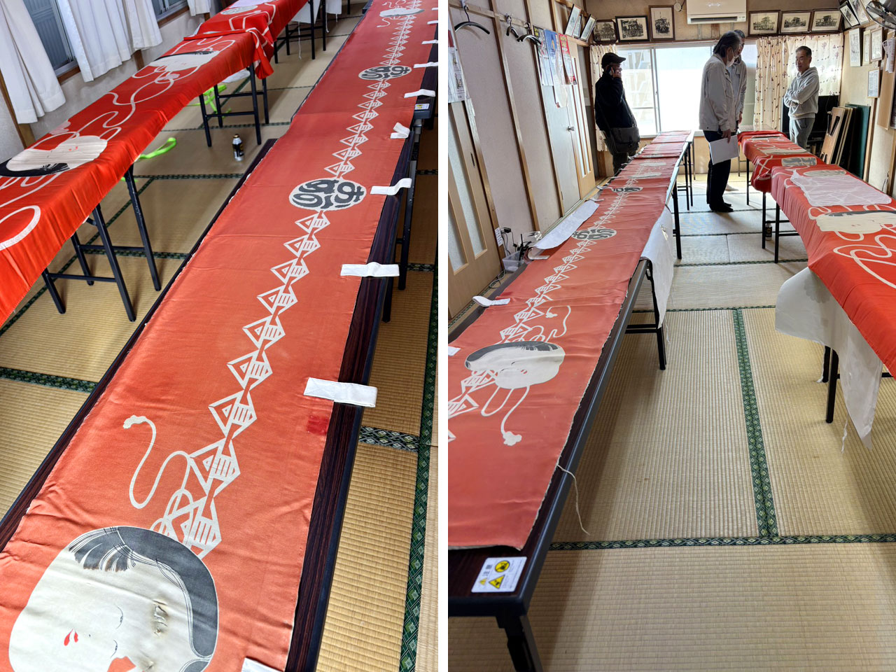 本日、戦前から伝わる高町の希少な屋台の幕(現在は使用していません)の虫干しを行いました。※戦中は、旧内田病院の倉に保管され戦火を免れたという伝説があります。